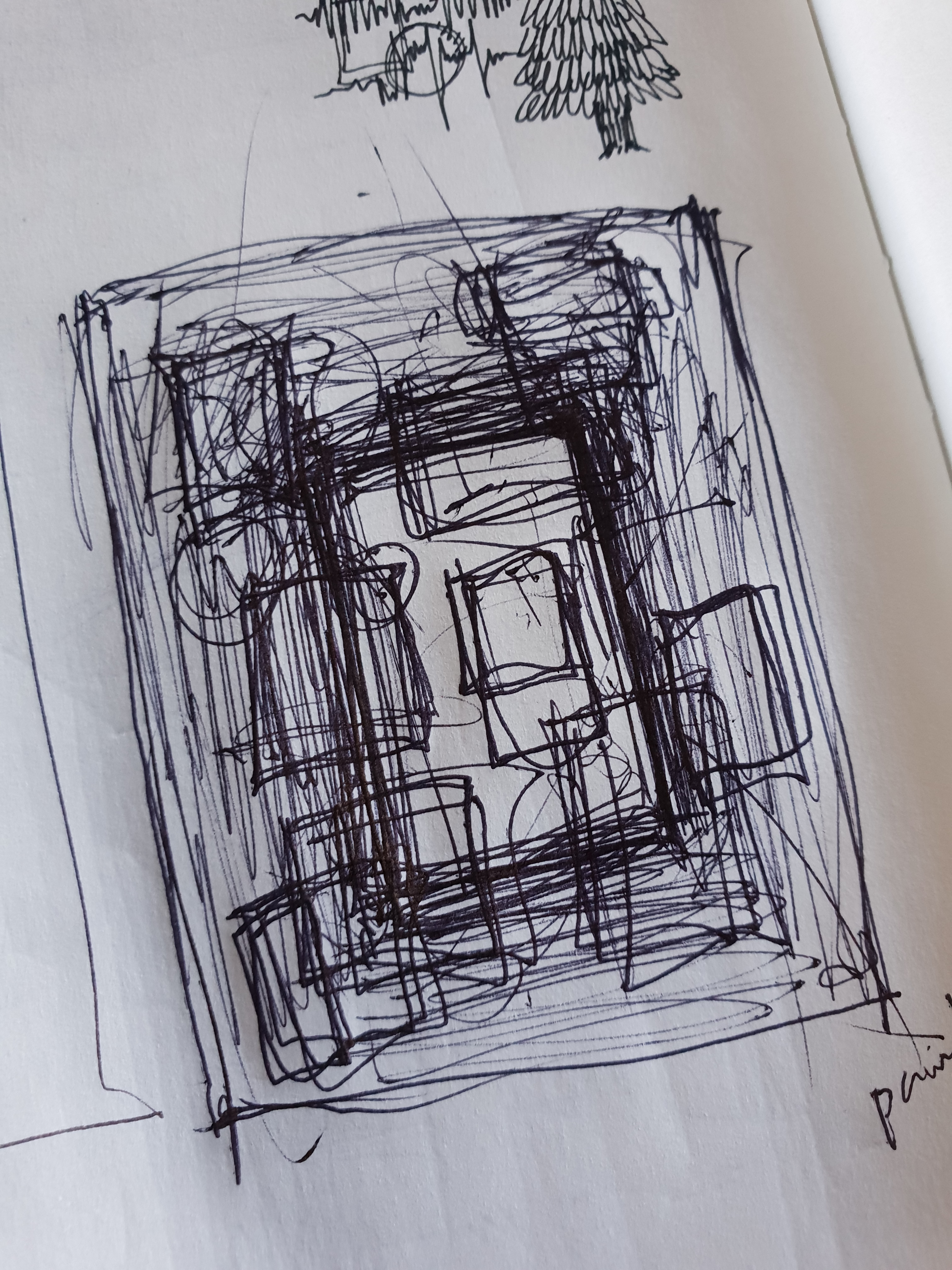There is a rectangle in the middle of the drawing drawn as a single line which represents the bed: a personal space where I would feel safe going to sleep and where most of my dreams are generated. Squares and rectangles are randomly placed across the page as portrayals of different dreams. Part of the shapes that are inside the central rectangle are coloured black, in that dreams are more common during the night rather than during the day. These depict the dreams that are actually visualized during sleep.